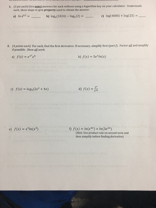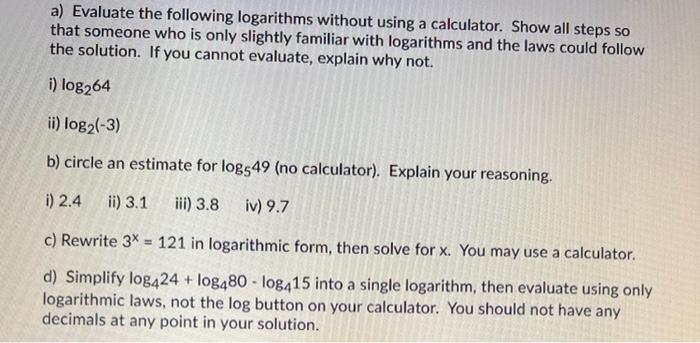 Solved A Evaluate The Following Logarithms Without Using A Chegg Com